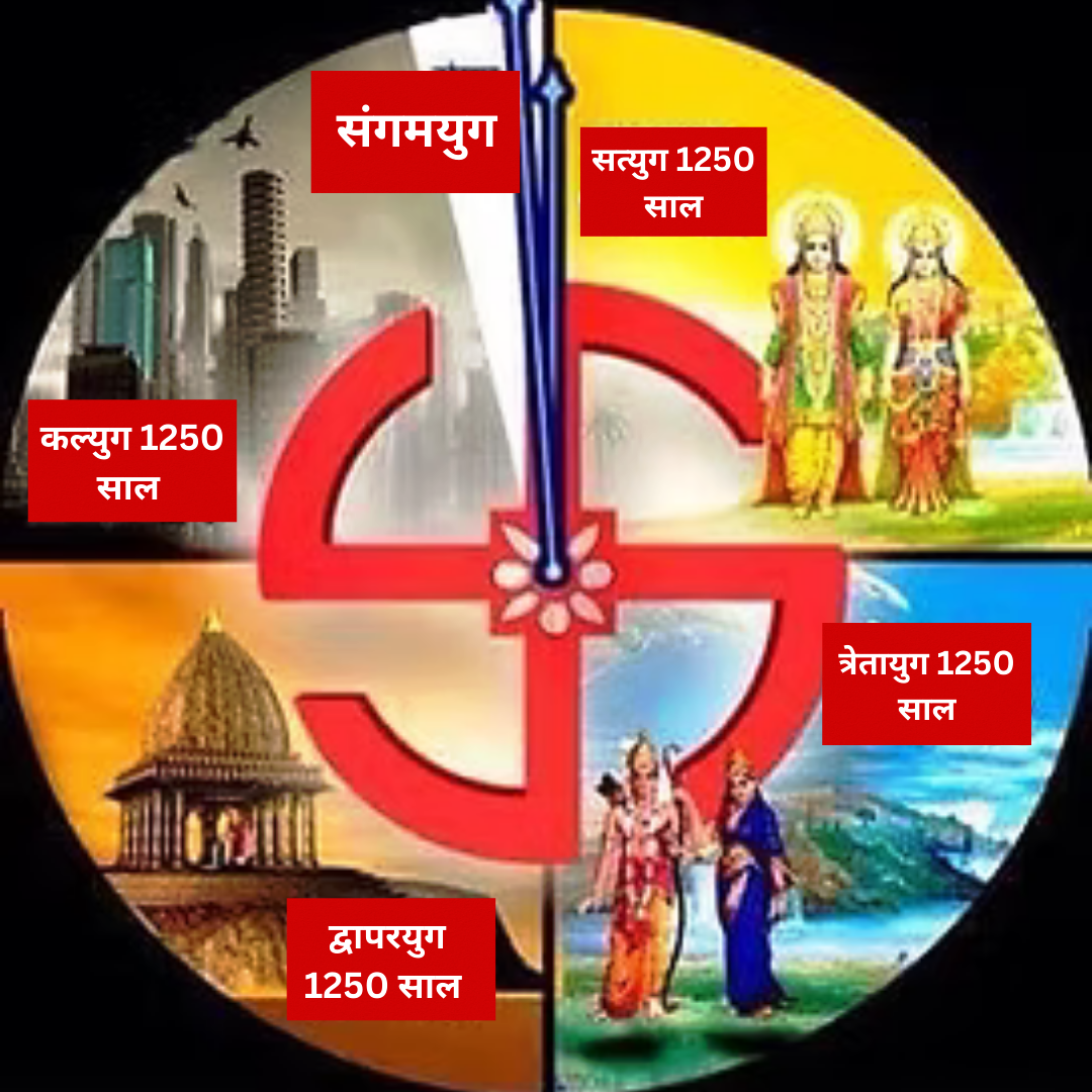 मानव सृष्टि चक्र 5000 साल का है--> सतयुग 1250 साल , त्रेतायुग 1250 साल , द्वापरयुग 1250 साल, कलियुग 1250 साल